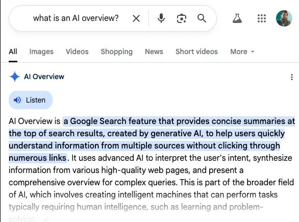 | User Journey | User clicks a link to find an answer on a website. | User gets the answer directly from the AI on the SERP. |
